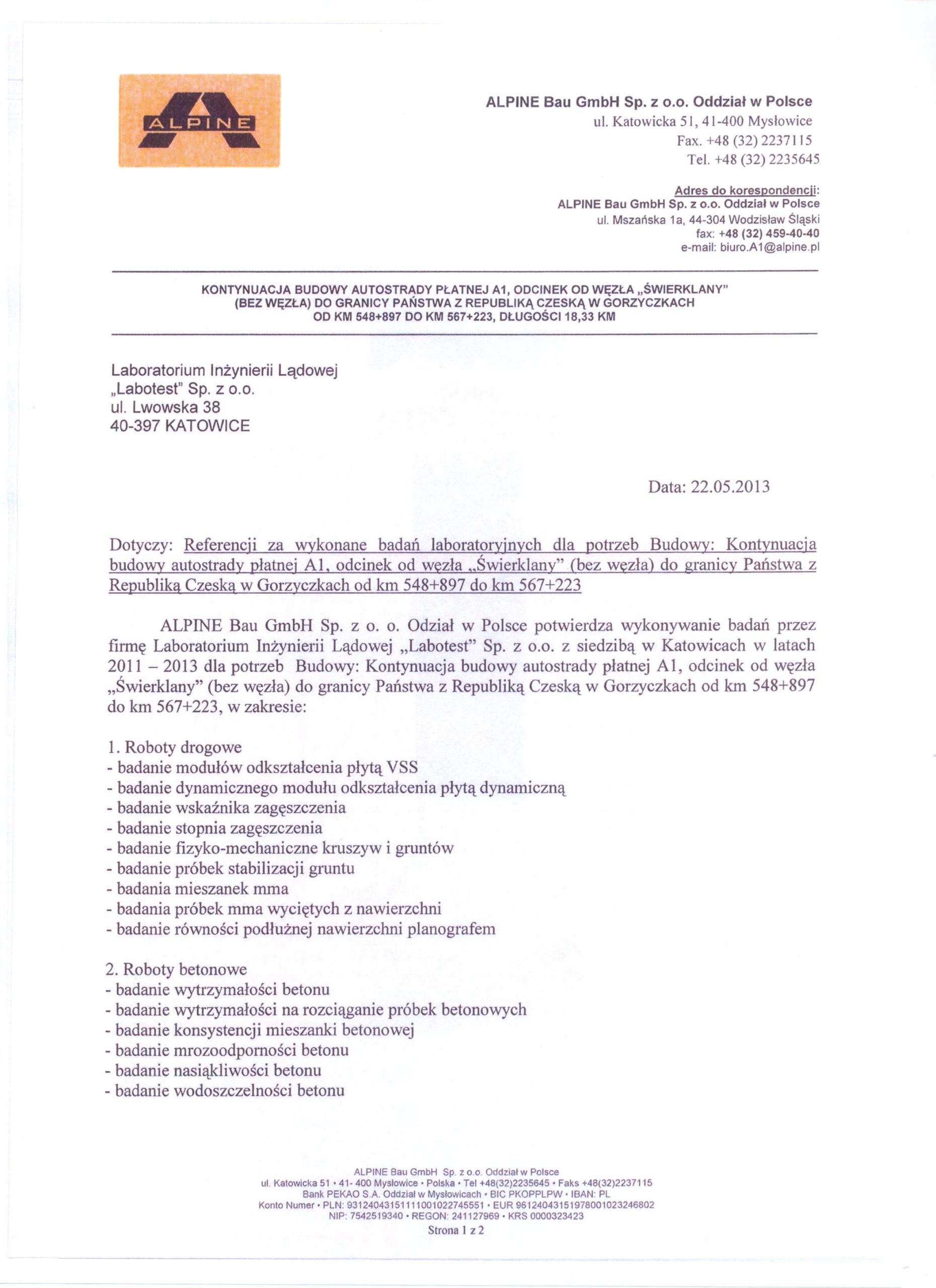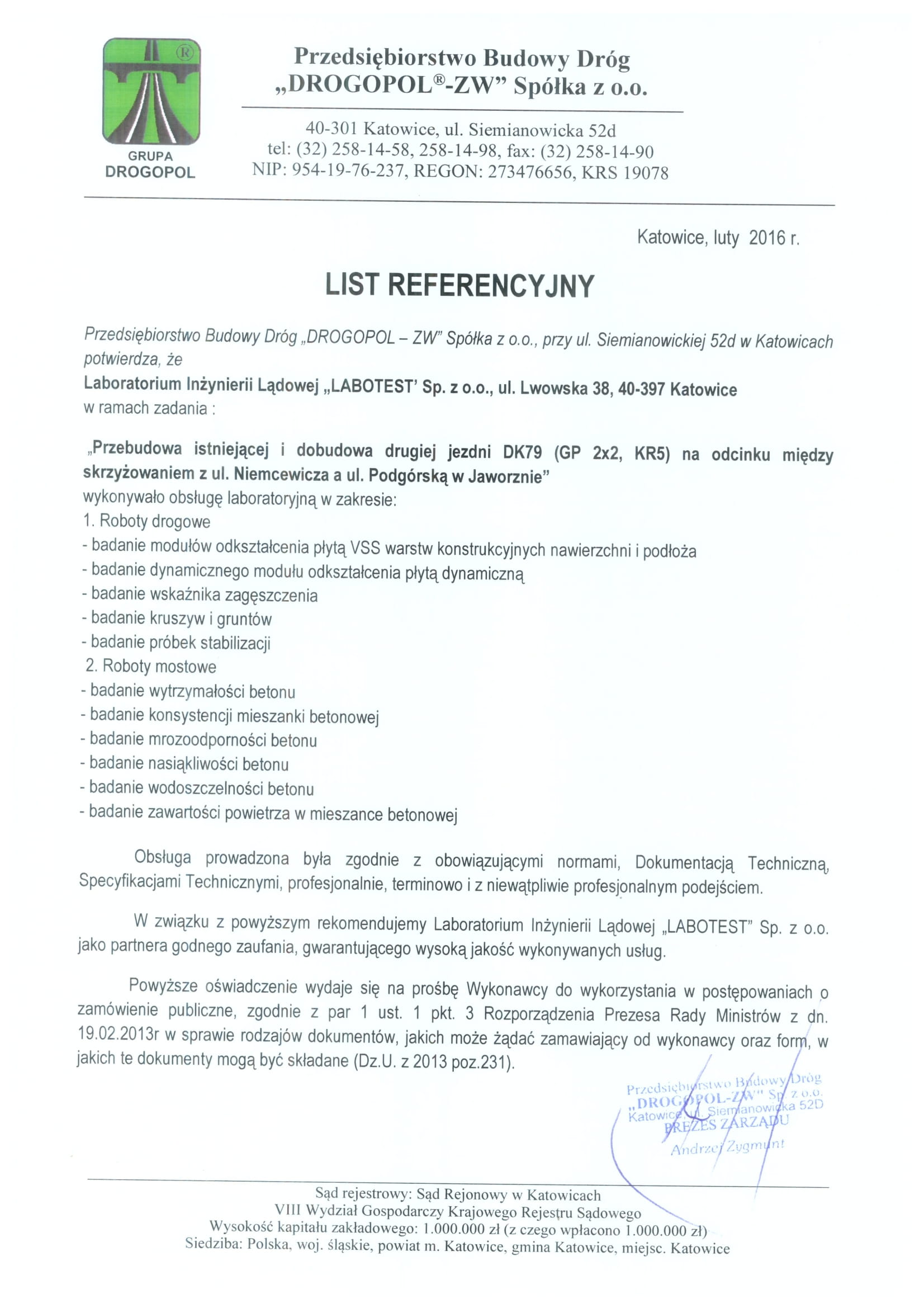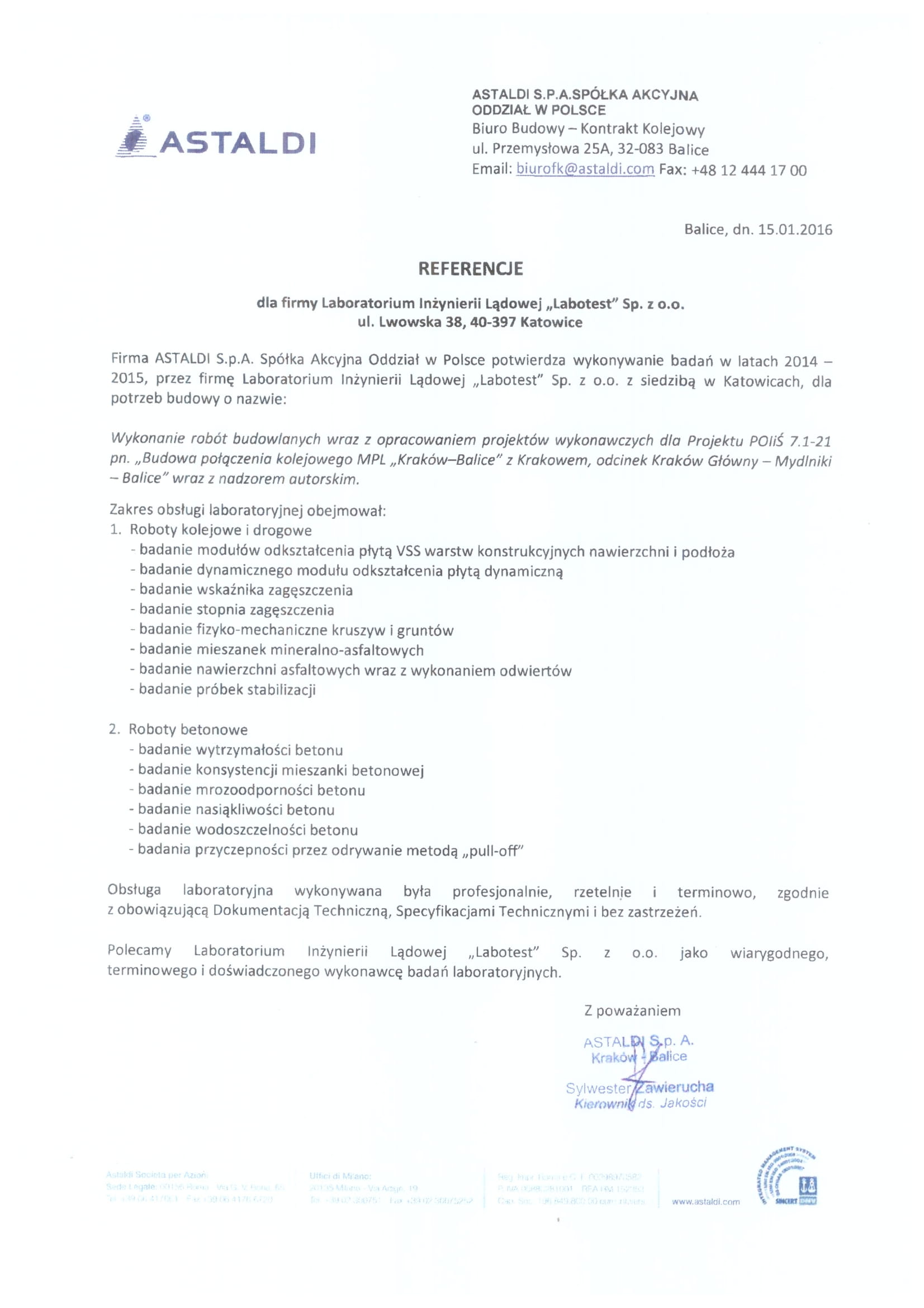Dzięki profesjonalnemu i rzetelnemu podejściu do wykonywanych zadań, doczekaliśmy się wielu pochlebnych opinii naszych klientów i partnerów. Zapraszamy do zapoznania się z wybranymi referencjami wystawionymi naszej firmie.
